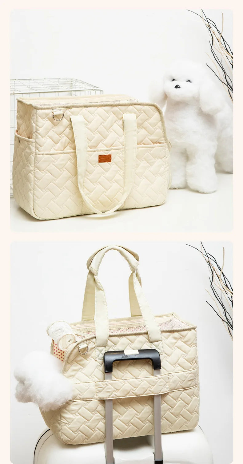 This large-capacity, portable pet carrier bag lets you carry your cat or small dog comfortably and securely. Crafted from breathable quilted material with soft padding, it’s designed for daily trips, outings, and travels.