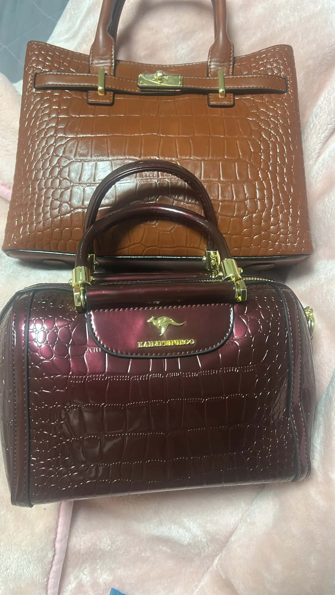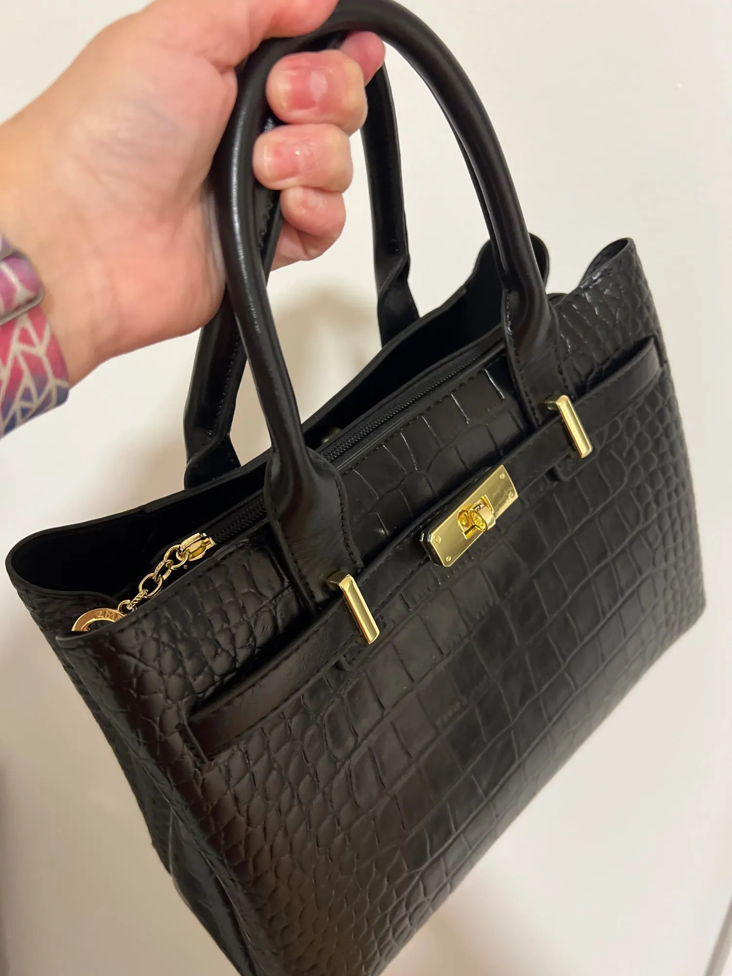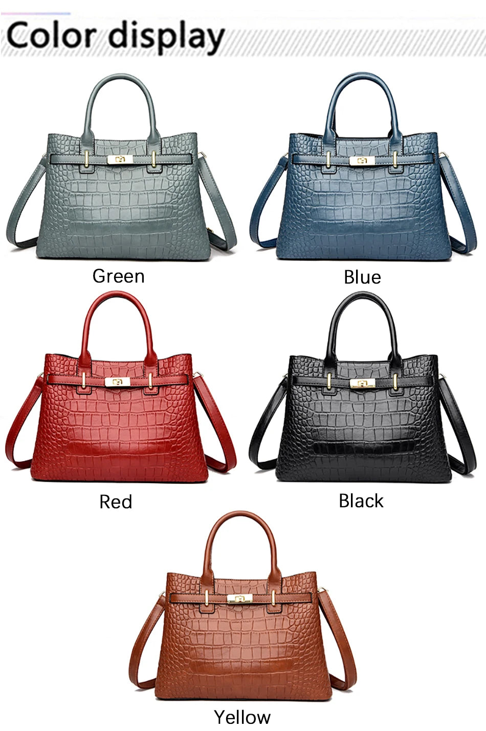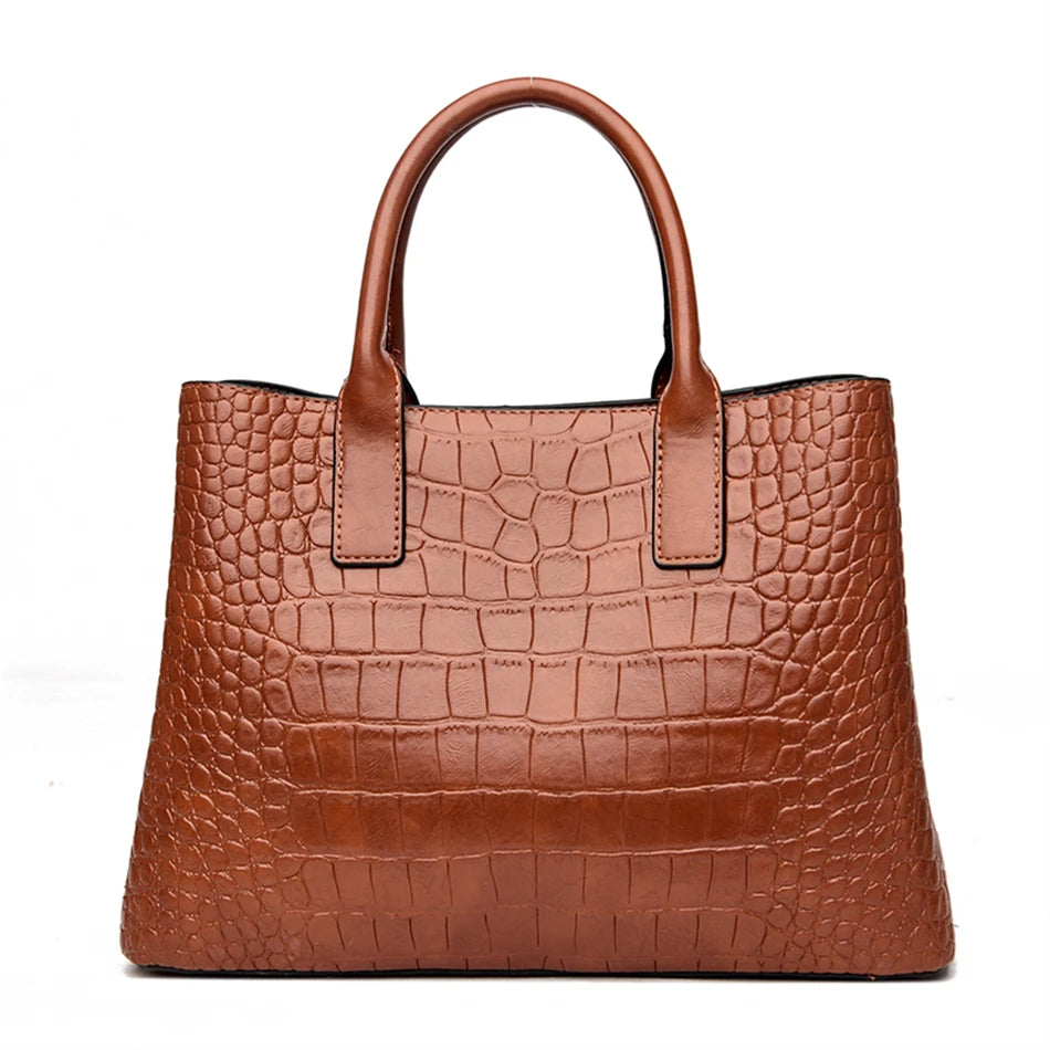 Exquisitely crafted from premium soft leather with a distinctive crocodile texture, this handbag offers a refined silhouette, a secure turn-lock closure, and interior organization for daily essentials. The warm brown tone pairs seamlessly with both formal and casual outfits, while the compact size keeps everything you need close at hand without sacrificing style.