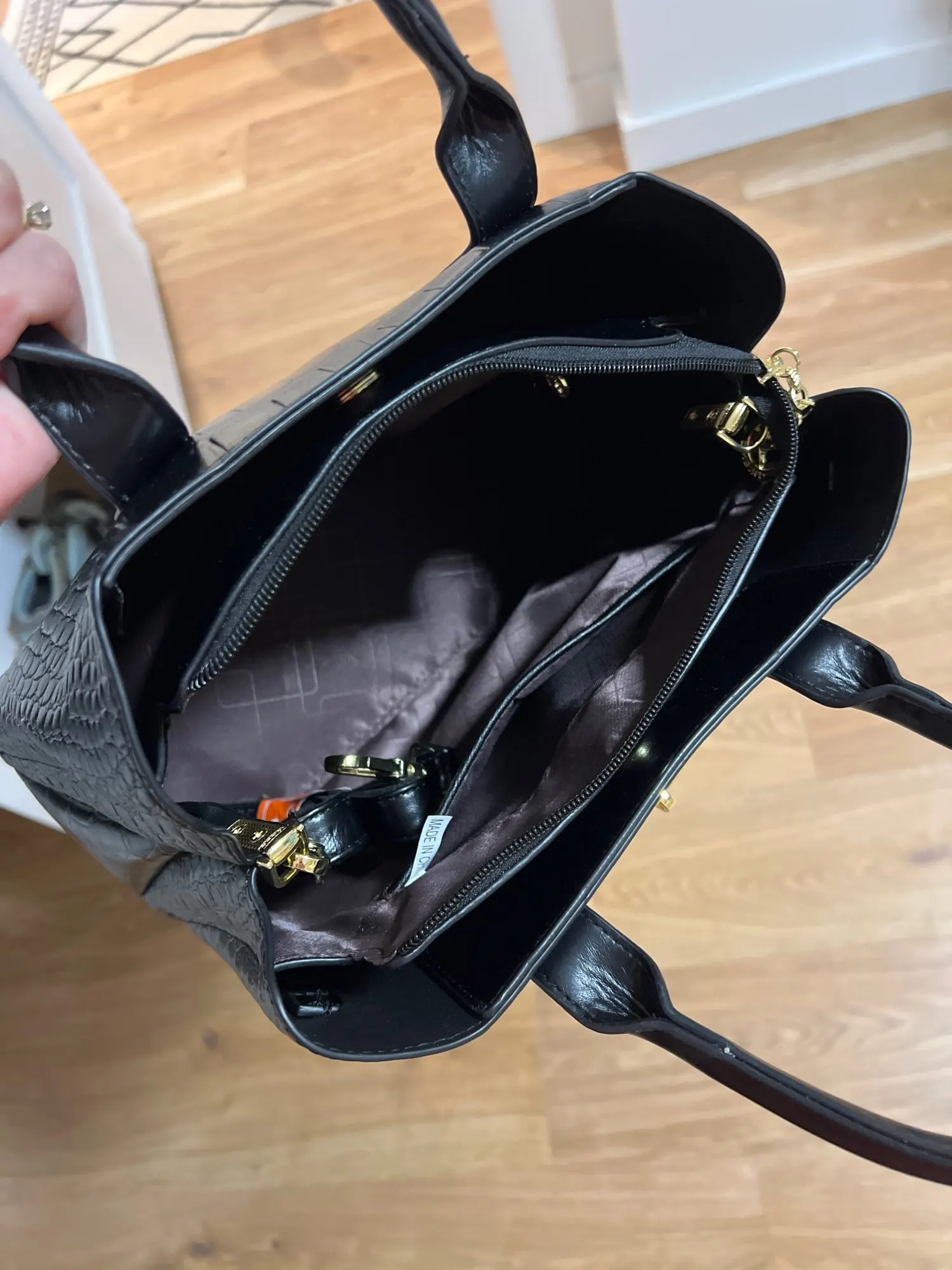 - Ample interior pockets to organize phone, wallet, keys, and cosmetics