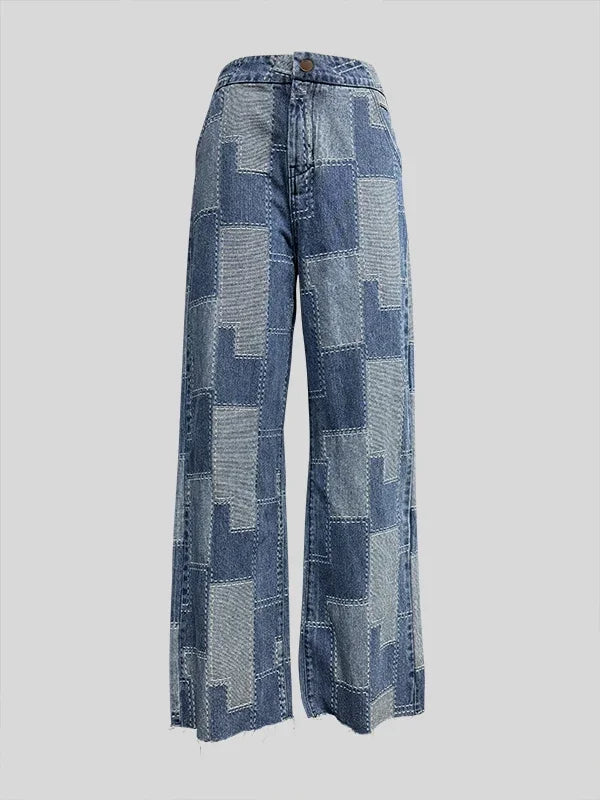 - Patchwork design using multiple denim shades adds visual interest and versatility.