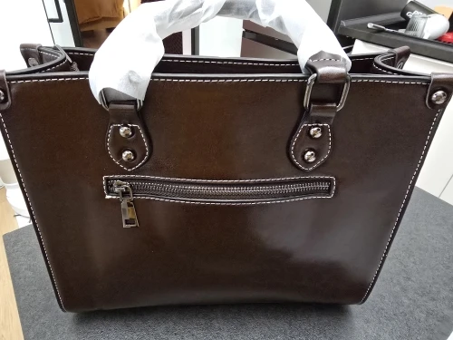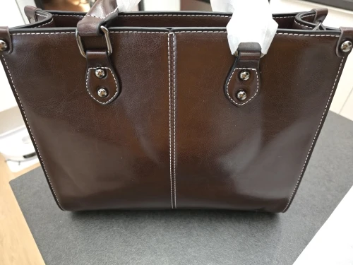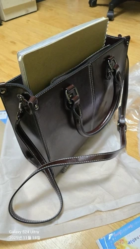 - Genuine cowhide leather tote with a rich, masculine finish and durable construction.