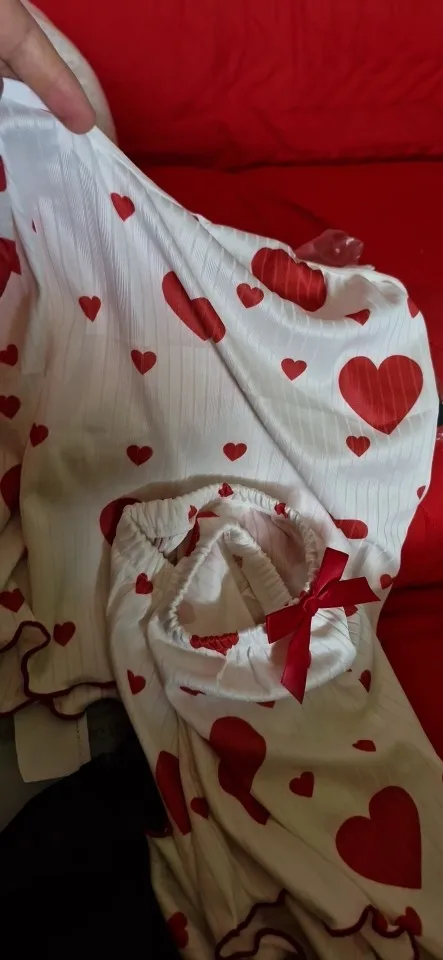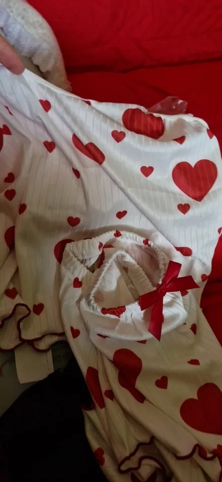 - The all-overan easy, red heart print adds a romantic, playful vibe.